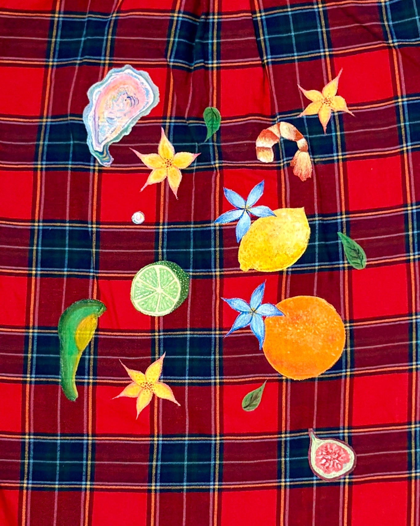 Citrus ocean medley hand-painted on Vineyard Vines flannel. Born in Maine.