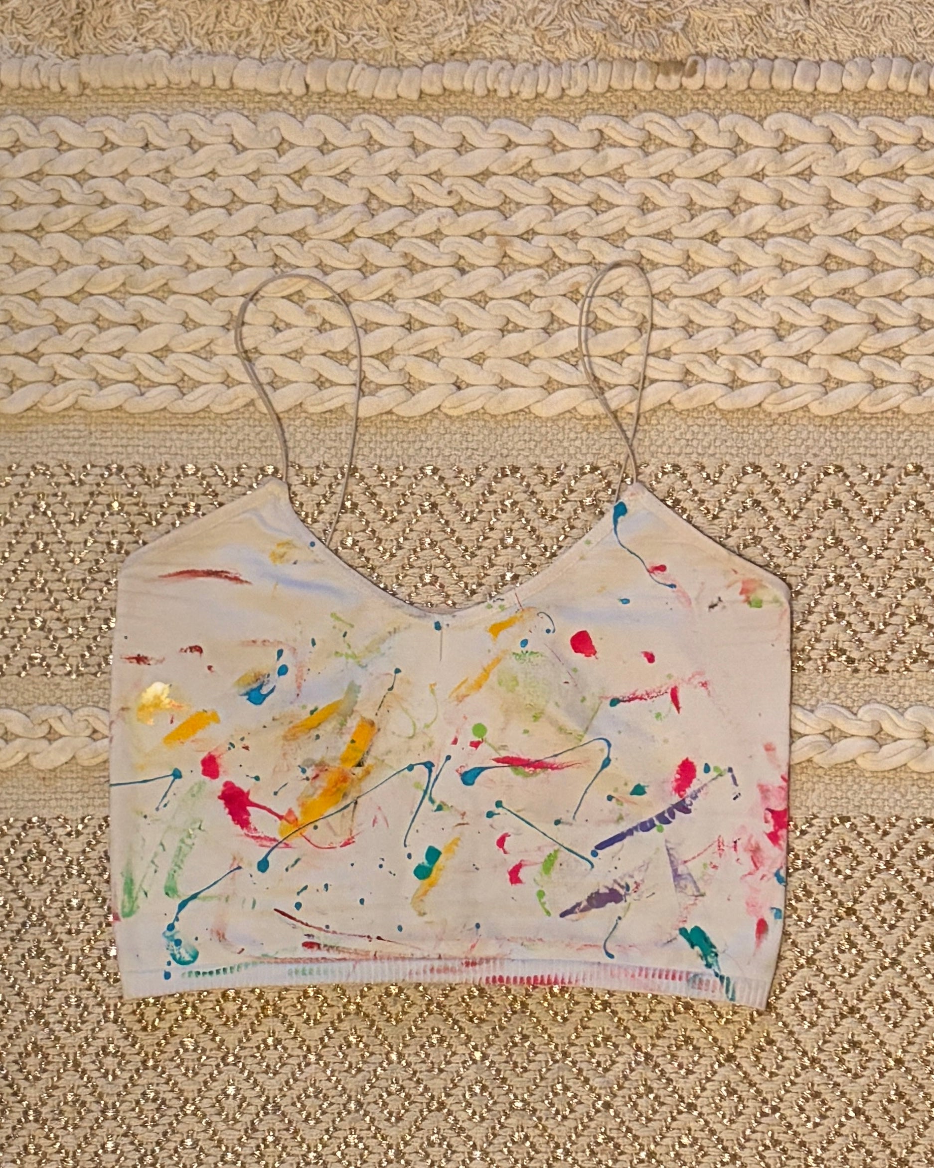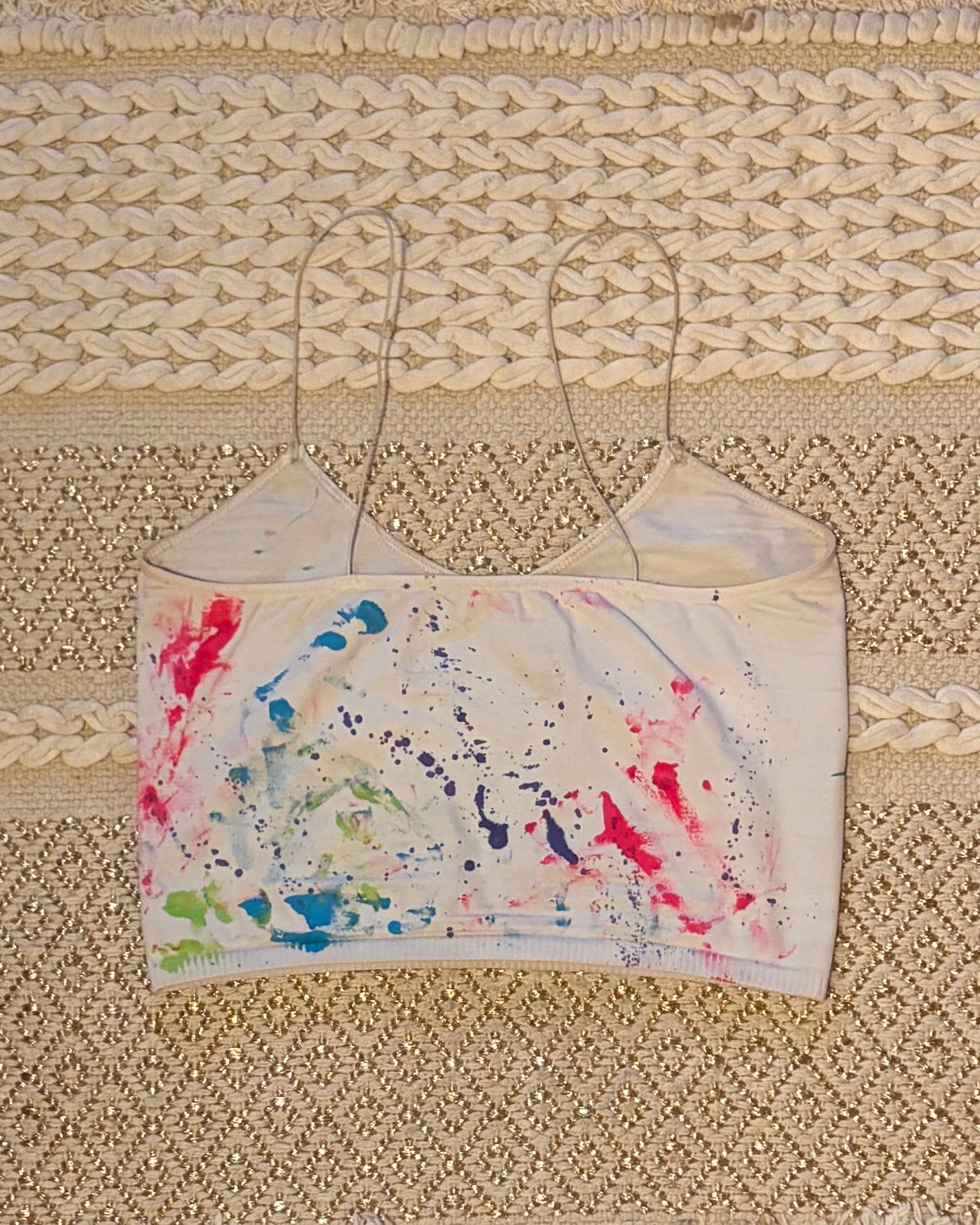Hand-painted paint splatter bralette crop. Born in Maine.
