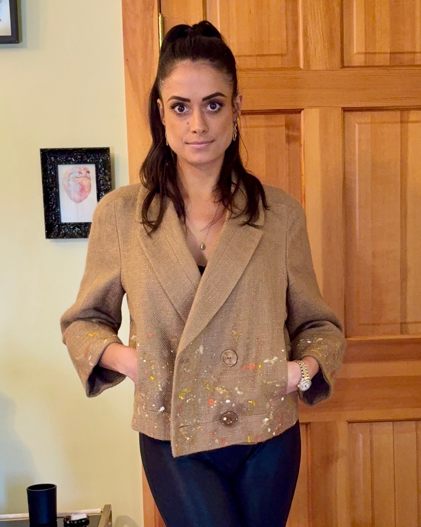 Vintage Talbot's tweed blazer. Cream, naples yellow, gold, and orange droplets. Born in Maine.