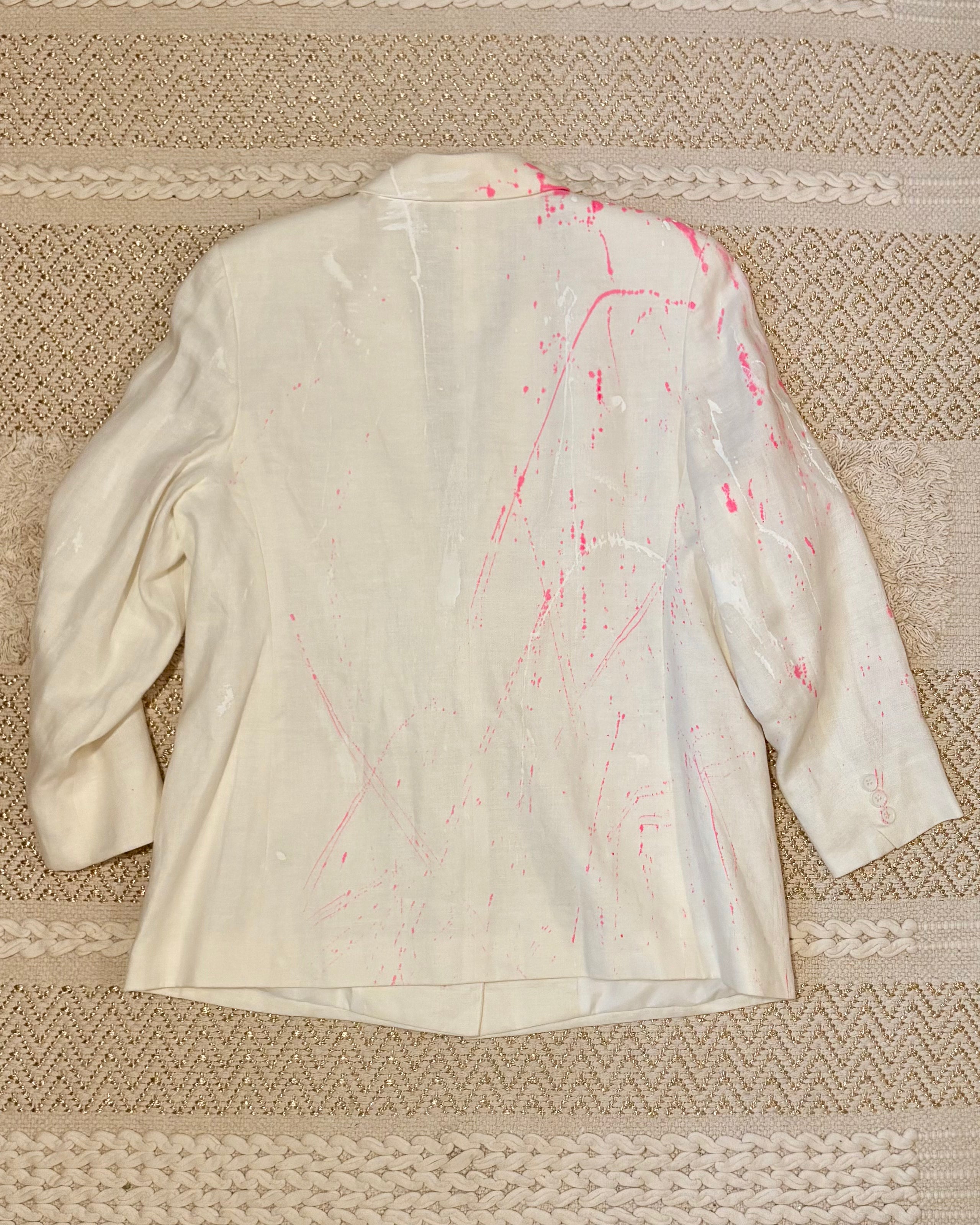 Vintage Talbots linen blazer. Adorned with fluorescent pink and titanium white. Born in Atlanta. Wear oversized.